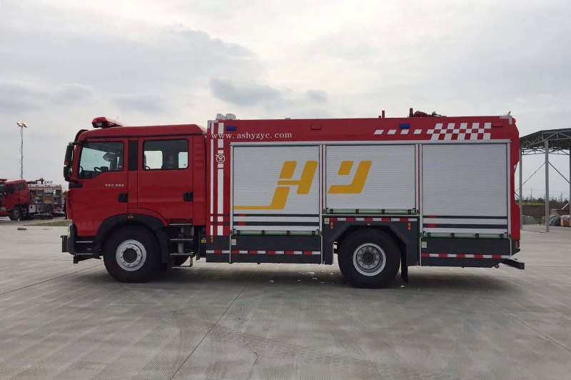 車輛底盤(pán)為ZZ5207TXFV471GF5底盤(pán),發(fā)動(dòng)機(jī)型號(hào)MC07H.35-60,功率為257kw,國(guó)六排放標(biāo)準(zhǔn),軸距4500mm,罐體材質(zhì)采用采用優(yōu)質(zhì)304不銹鋼板,容罐容量:水3600kg+B類泡沫900kg+A類泡沫200kg;消防泵為KSP1000(美國(guó)大力);壓縮空氣泡沫系統(tǒng):品牌:美國(guó)大力,型號(hào):KSPBC1000/220型,型式:全自動(dòng)集成式壓縮空氣A類泡沫系統(tǒng),消防炮為PLKD48手動(dòng)及電控,升降照明系統(tǒng)YZH6-4.83CFA,牽引絞盤(pán)系統(tǒng)為杭州天銘FHW16500。
