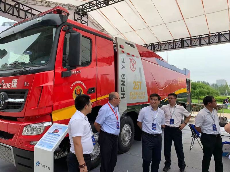 北奔集團(tuán)總經(jīng)理郭平曉來(lái)到我公司的展位駐足觀看,對(duì)我公司生產(chǎn)的25噸重型水罐消防車給予高度評(píng)價(jià):此車型外觀造型高端、大氣、時(shí)尚,改變了老百姓對(duì)消防車外觀印象。同時(shí),載液量25噸非常適合北方、西北、東北等缺水的地區(qū),為滅火救援提供有效保障。今后,北奔集團(tuán)要繼續(xù)研發(fā)特種車輛底盤,要與遼寧衡業(yè)集團(tuán)深耕細(xì)作,緊密合作,加強(qiáng)技術(shù)交流,力爭(zhēng)共同研發(fā)出高、精、尖的消防車,爭(zhēng)取走出國(guó)門,走向世界。